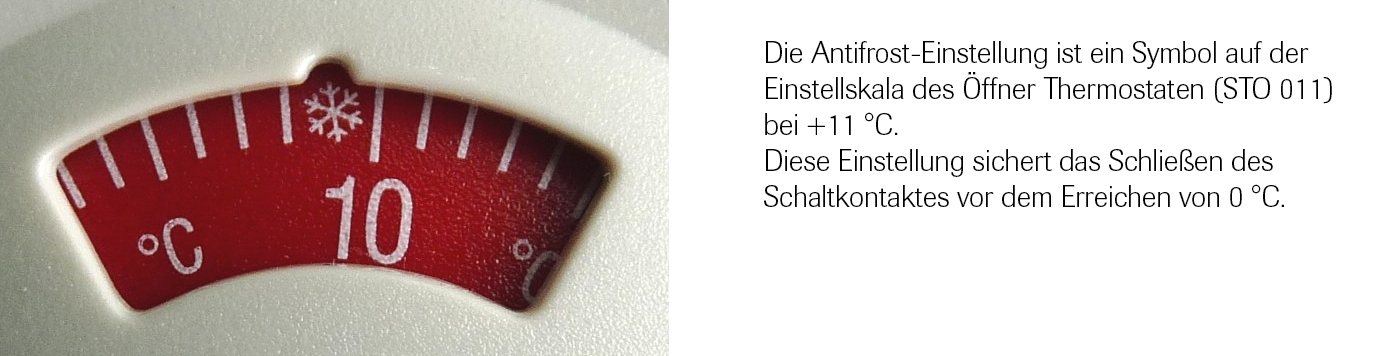 Ces thermostats mécaniques sont des régulateurs à deux points avec petite hystérésis. La molette de réglage de la variante d’ouverture possède une consigne antigel. Le coffret garantit une circulation d’air optimisée du bilame.