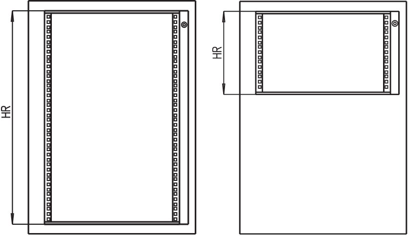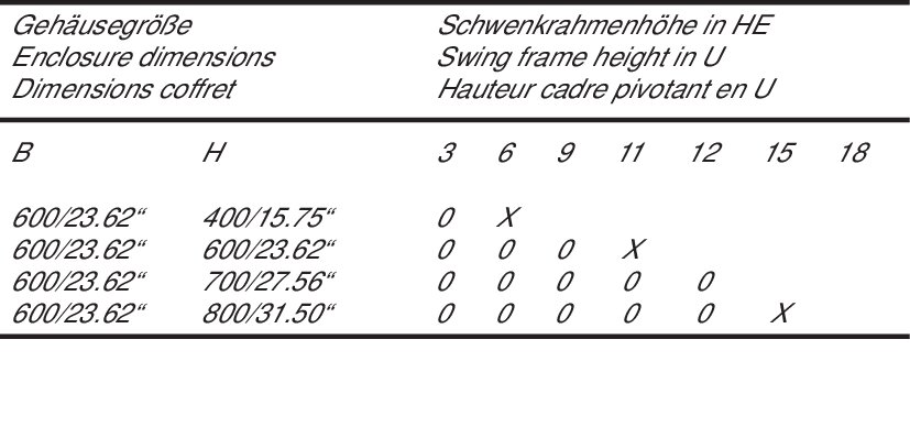 Cadre pivotant 19" pour coffrets SN avec L = 600 mm.