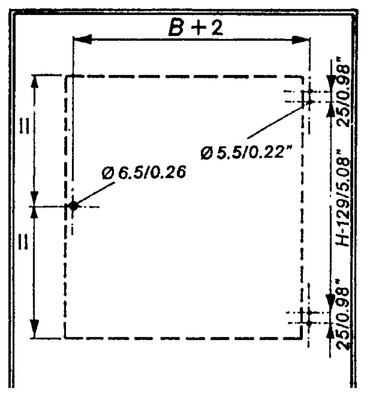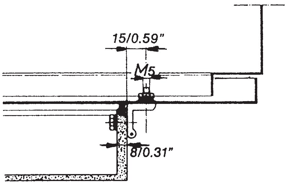 - Plastron avec version charnières 1 : Plastron plus étroit que la porte de l'armoire de commande.