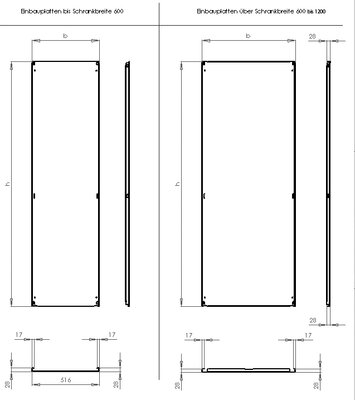 Plaque de montage jusqu’à une largeur d’armoire de 1200 mm avec bord C. Pour une largeur d’armoire de 1600/2000 mm, la plaque de montage sera renforcée par des profils en U.
