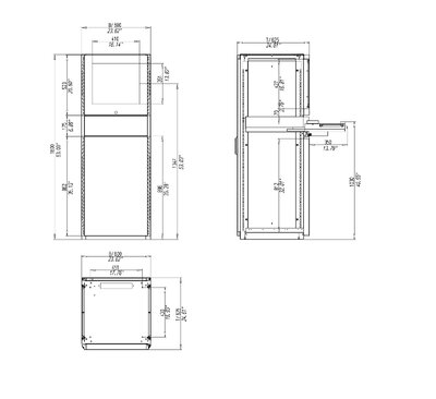 Armoire PC avec système de verrouillage centralisé pour toute la face avant. Portes plexi conçues pour écrans jusqu‘à 21", 4:3 ou 16:9. Support repose-mains en bois